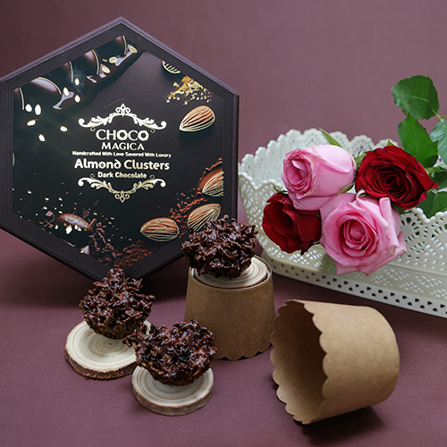Give a satisfying experience to your sweet tooth with Dark Chocolate Almond Clusters, made with fine Belgian dark chocolate coverture blended smoothly with roasted almond flakes. Feel the richness of cocoa beans authentically sourced from Ivory Coast, Ecuador and Ghana for a well-rounded chocolate flavor. Gently blended with caster sugar and water, this dark chocolate will make you feel the aroma and luxury, right in the first bite. So be ready for this munchy treat, a flavor that can melt in your mouth and will remain in your heart forever.